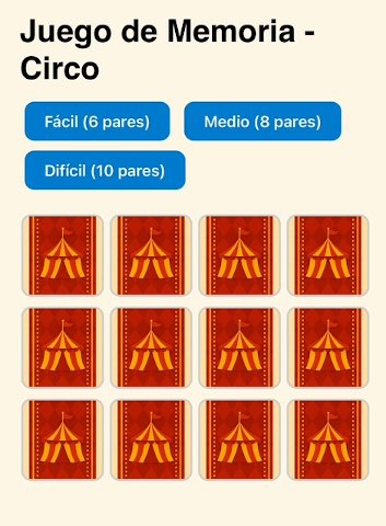 Hasta diez parejas de elementos y personajes del circo para memorizar su posición.